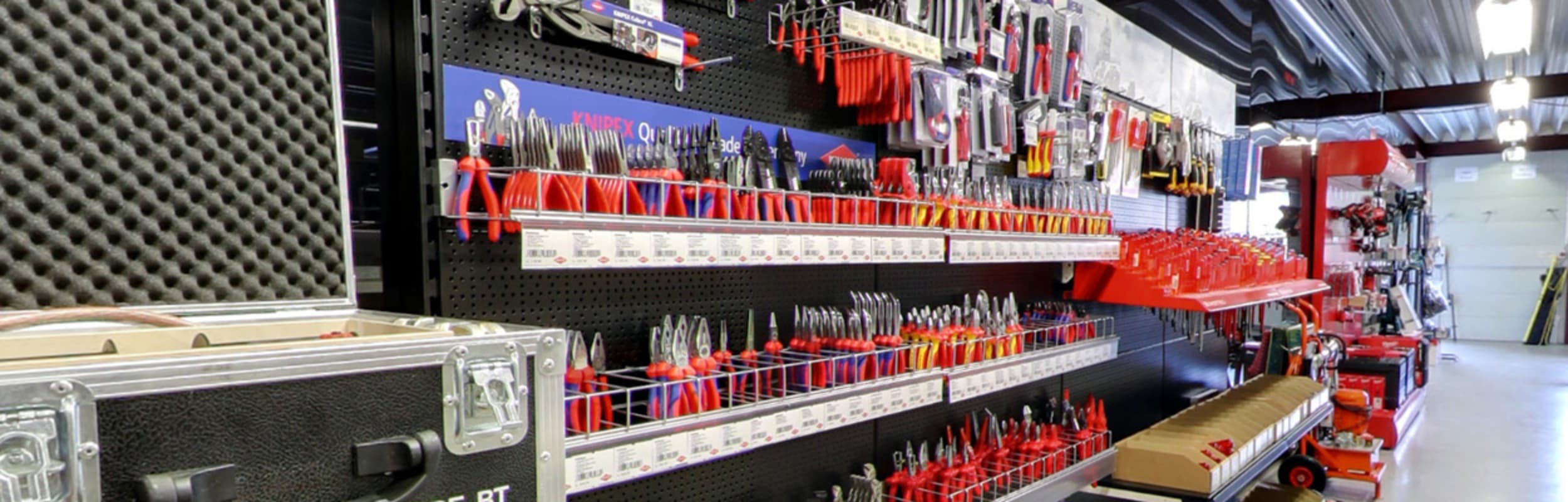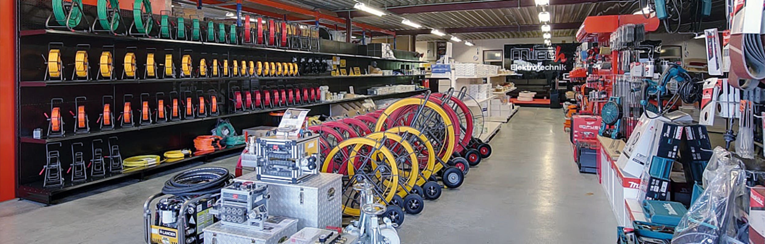 Plus de 5000 articles sont disponibles à tout moment à notre emplacement à Oberwil. Cela comprend une boutique unique spécialement destiné aux électriciens de réseaux et monteurs électriciens.